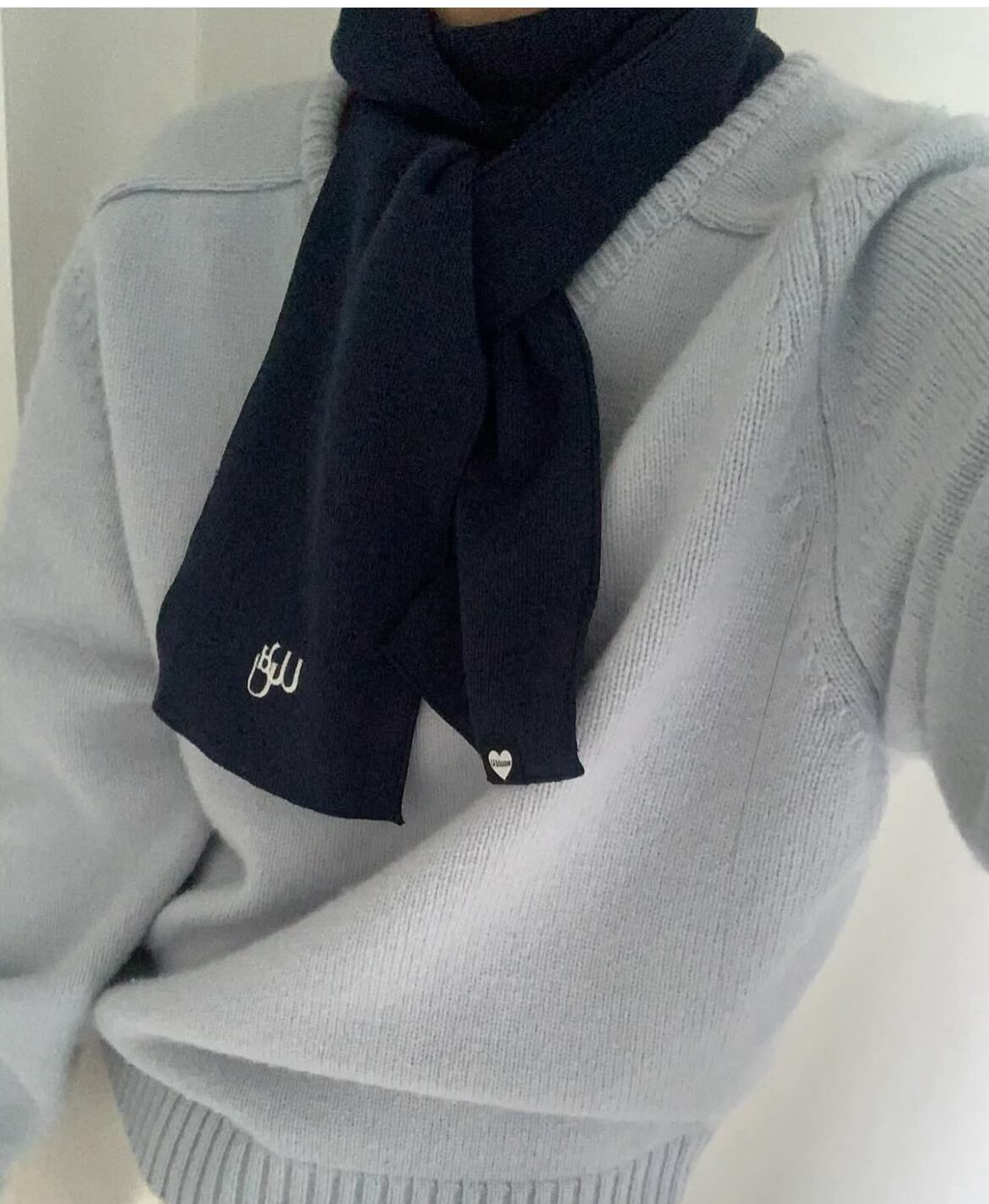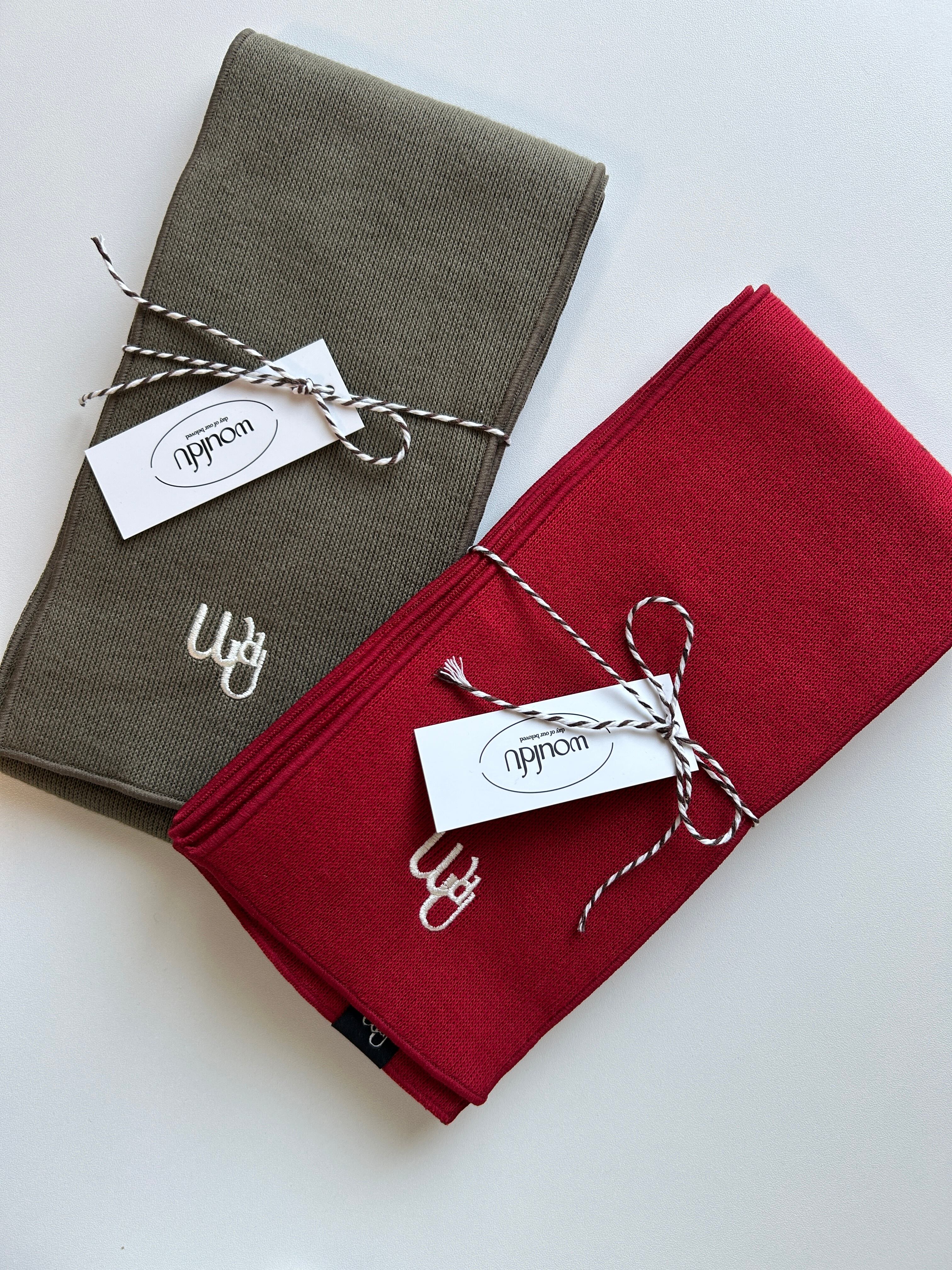 マフラーはシンプルな飽きのこないデザインで